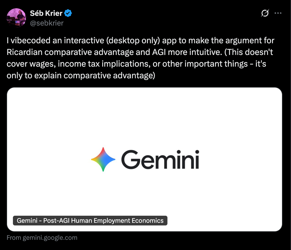 Also recently, the excellent Seb Krier of DeepMind posted about a tool to illustrate comparative advantage he had built: